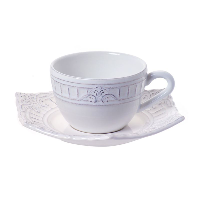 Xícara De Chá Com Pires Cerâmica Branco Venice 4 Peças