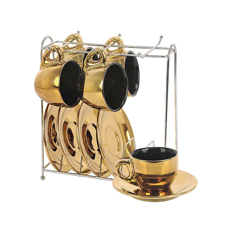XÍCARAS DE CAFÉ 12 PEÇAS DE PORCELANA DOURADA COM SUPORTE